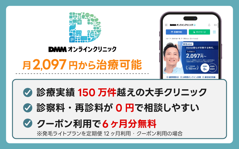 通院が難しい場合は自宅からスマホで医師の診療が受診できるオンライン診療クリニックがおすすめで特にDMMオンラインクリニックが診療実績150万件と支持されています。