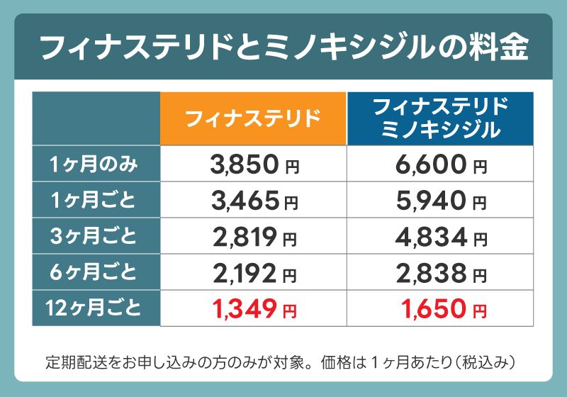 レバクリの「守りの治療プラン」であるフィナステリド内服30錠の価格は、1ヵ月のみでは3,850円です。定期を選ぶとお得になり、12ヶ月ごとの配送プランなら月額1,349円で治療が可能です。