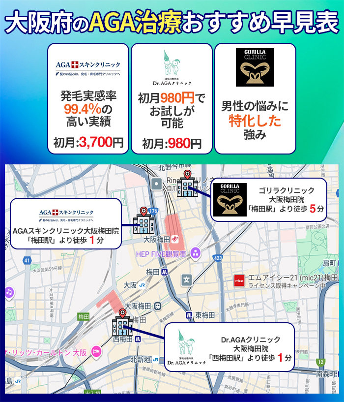 大阪のAGA・薄毛治療おすすめクリニック12院