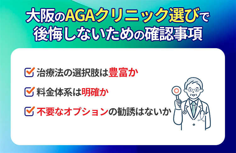大阪のAGAクリニック選びで後悔しないための確認事項